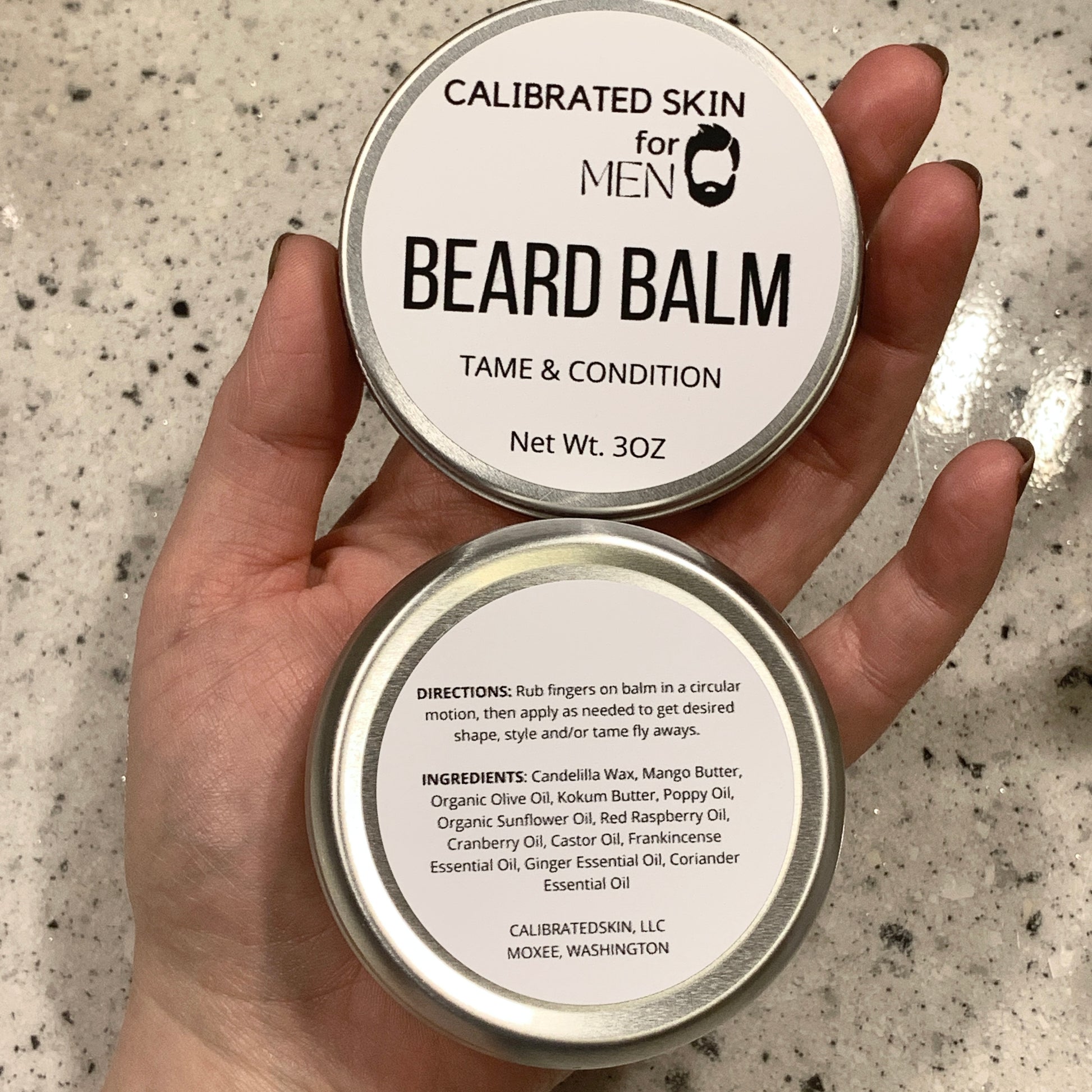 Organic Olive Oil keeps hairs soft and nourished. Candelilla Wax, Mango Butter, and Kokum Butter give a soft-to-the-touch hold that can tame a beard or shape a mustache. Cranberry Seed and Raspberry Seed Oils calm and soothe hairs and skin underneath. It can be used to style head hair as well, making this vegan balm double duty.